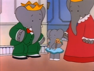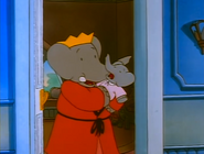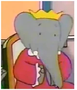 Queen Celeste is Babar's lovely wife and Arthur's elder sister. She is the matriarchal monarch queen of Celesteville, the capital of Babar's elephant kingdom. They have 4 children together. She wears a crown just like Babar and is usually seen wearing a pink long-sleeved floor-length gown with frilly white cuffs and collar as well as a blue gem.