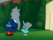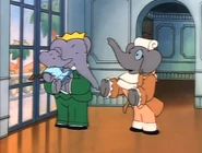In earlier seasons, she does not have as many appearances as the triplets did, in fact she didn't appear until Babar: The Movie. In the show, she didn't make her first appearance until Season 2 in the episode Peer Pressure. When we do see her she is still a toddler, and gets very excited easily. In season 3, we see her as a young girl who is around 4 or 5 years old. Like many little girls her age, she is still learning but is smart like her father and still very happy. Her parents are very patient with her, as are her siblings and the staff, especially when she asked about the anniversary of Celesteville, her father, Cornelius, and Pompadour explain it to her.1 She and her sister Flora are close, she and Pom get along very well, and in one episode tried to bond with Alexander, and while he wasn't up for it at first, he and Isabelle were close at the end, even hugging her.2 She is always willing to help others, especially her family and the staff. When Cornelius and Pompadour weren't speaking to each other in Friendly Agreement she tries to help them out. In The One That Got Away, she is very good at fishing using a flower as bait, despite the fact that she had never fished before. Unlike Babar or the rest of the staff, she has no trouble trusting people as she was willing to give Rataxes a stamp he came to get.