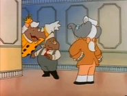 In the old kingdom, Pompadour was also a minister of the old king. When Babar was born, he suggested to name the baby Pierre, in fact, he was the only one who wanted that name. While he wasn't close to Babar when he was little, Pompadour was still patient with him. When Babar returned to the jungle after living in the city, Pompadour was very happy to see him again. When Babar tried to explain to the Old King they had to outthink the hunter, Pompadour tells Babar he has forgotten what it was like living in the jungle. He was very sad when the Old King died, and when the elephants were caught by the hunter, he was scared about what would happen next as they would either go to an ivory dealer or placed in a zoo or the circus. After the hunter was beaten, he knew when they returned home that Babar was the perfect next king. When building the new kingdom, he made several suggestions to speed up the building of the city and was happy when his ideas were supported.